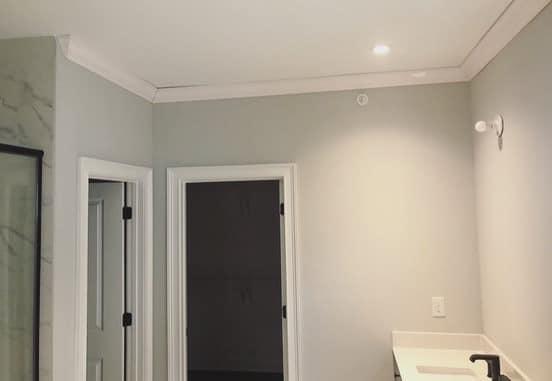 Full whole-home crown molding installation — every room, hallway, and transition treated with consistently profiled crown carried corner to corner with tight miters and no gaps. The finishing detail that ties every room together.